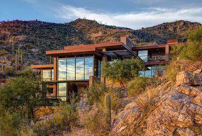 Nestled at the peak of a mountaintop, the design uses the natural rock outcroppings to zone the residence from public to private. A void is formed in plan, as the mountaintop becomes the complementing solid. The multi-level home organically forms into the mountain, erasing the distinctions between what is a synthetic wall or a naturally occurring rock formation. Horizontal lines create an architecture that complements the mountain and tries not to take away from the grandeur of the site. The site-specific planning hides even its modest size.